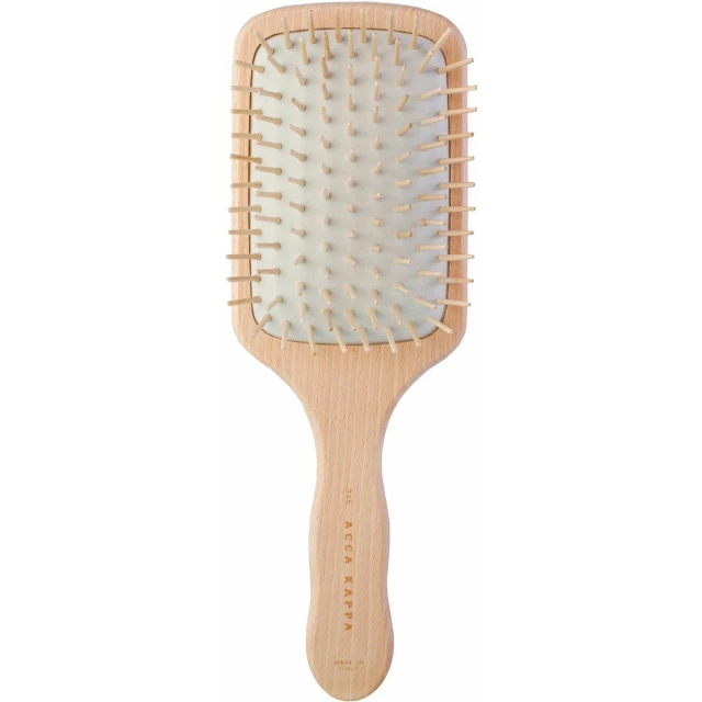Щетка для волос квадратная, пневматическая с деревянными зубчиками и подушкой из натурального каучука.