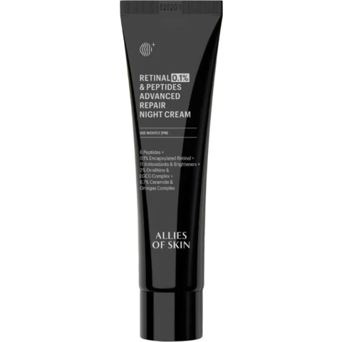 Омолодите и восстановите кожу во время сна с помощью ночного крема с ретиналем и пептидами Allies of Skin.