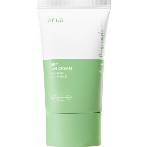 Солнцезащитный крем с экстрактом хауттюйнии Anua Airy Sun Cream SPF50+ PA++++ для ежедневного применения на основе физических фильтров защищает кожу от пагубных воздействий солнечных лучей, оказывает комплексное воздействие на чувствительную и склонную к воспалениям кожу.
