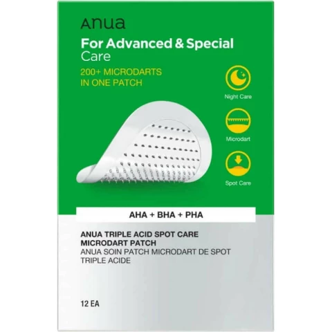 Точечные патчи с кислотамиAnua Triple Acid Spot Care Microdart Patchразработаны для более глубокого воздействия на воспаления.