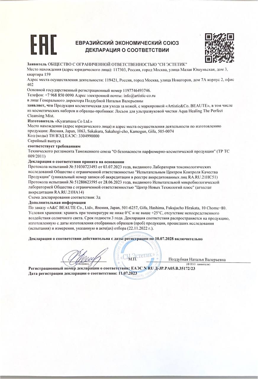 ARTISTIC&CO Aqua Healing the Perfect Cleansing Mist – электролизованная вода с отрицательными ионами, создана специально для проведения процедур с аппаратом Dr. Fresco The Zeus.