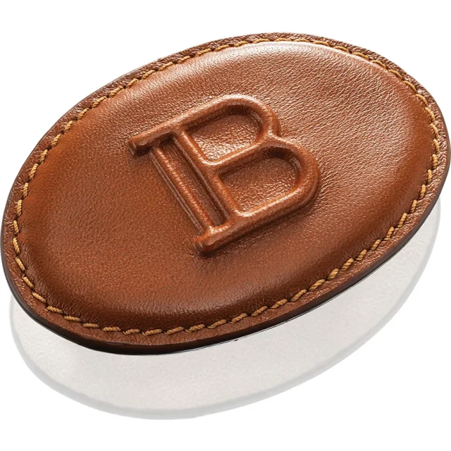 Овальное кожаное основание цвета "шоколад" дополнено элегантной буквой В, символизирующей роскошь бренда.