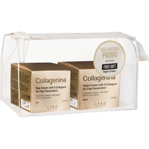 Collagenina Day & Night Firming Cream Pack Grade 2 — это интенсивная система двойного действия, разработанная швейцарской лабораторией Labo Cosprophar для коррекции выраженных признаков старения.
