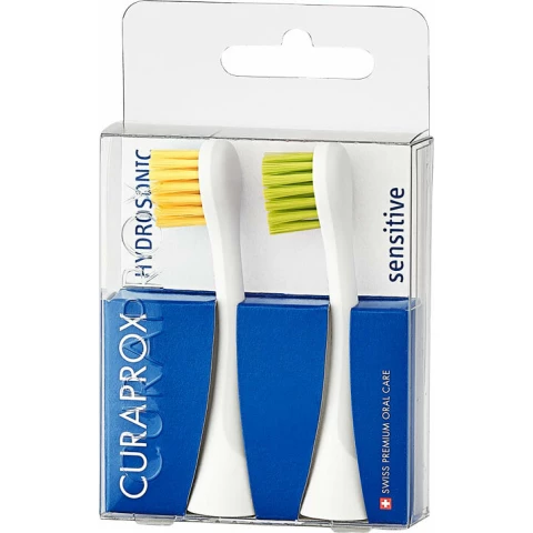 Набор из 2-х цветных сменных насадок для чувствительных десен Sensitive к звуковой щетке Curaprox Hydrosonic предназначен для режимов: