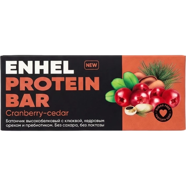 Высокопротеиновый батончик Enhel Med с коллагеном "Клюква-кедровый орех" — источник белка, который помогает поддерживать мышечную массу, иммунитет и здоровье волос.
