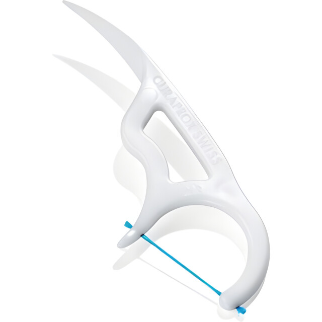 - Для брекетов, мостов и широких промежутков создан суперфлосс — усиленная нить с жестким кончиком и губчатой серединой.