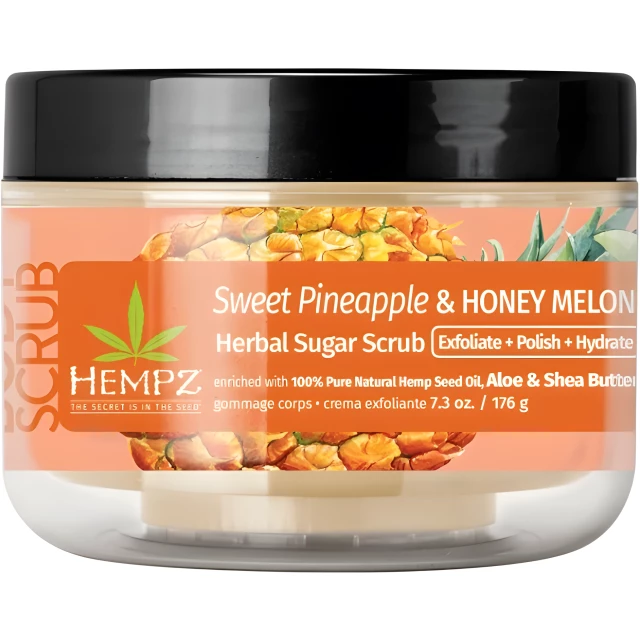Sucrose, Glycerin, Water/Aqua/Eau, Silica, Cannabis Sativa Seed Oil, Aloe Barbadensis Leaf Juice, Butyrospermum Parkii (Shea) Butter, Helianthus Annuus (Sunflower) Seed Oil, Cocos Nucifera (Coconut) Oil, Persea Gratissima (Avocado) Oil, Simmondsia Chinensis (Jojoba) Seed Oil, Ananas Sativus (Pineapple) Fruit Extract, Cucumis Melo (Melon) Fruit Extract, Fragrance (Parfum), Phenoxyethanol, Cocamidopropyl Betaine, Limonene, Sodium Benzoate, Benzyl Benzoate, Linalool, Ascorbic Acid, Retinyl Palmitate, Tocopheryl Acetate, Panthenol, Citric Acid, Potassium Sorbate