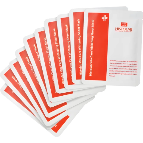 В наборе: маска тканевая «Выравнивающая с мультивитаминным комплексом» (Vita Whitening Sheet Mask) 30 гр 10 шт. в подарок косметичка.