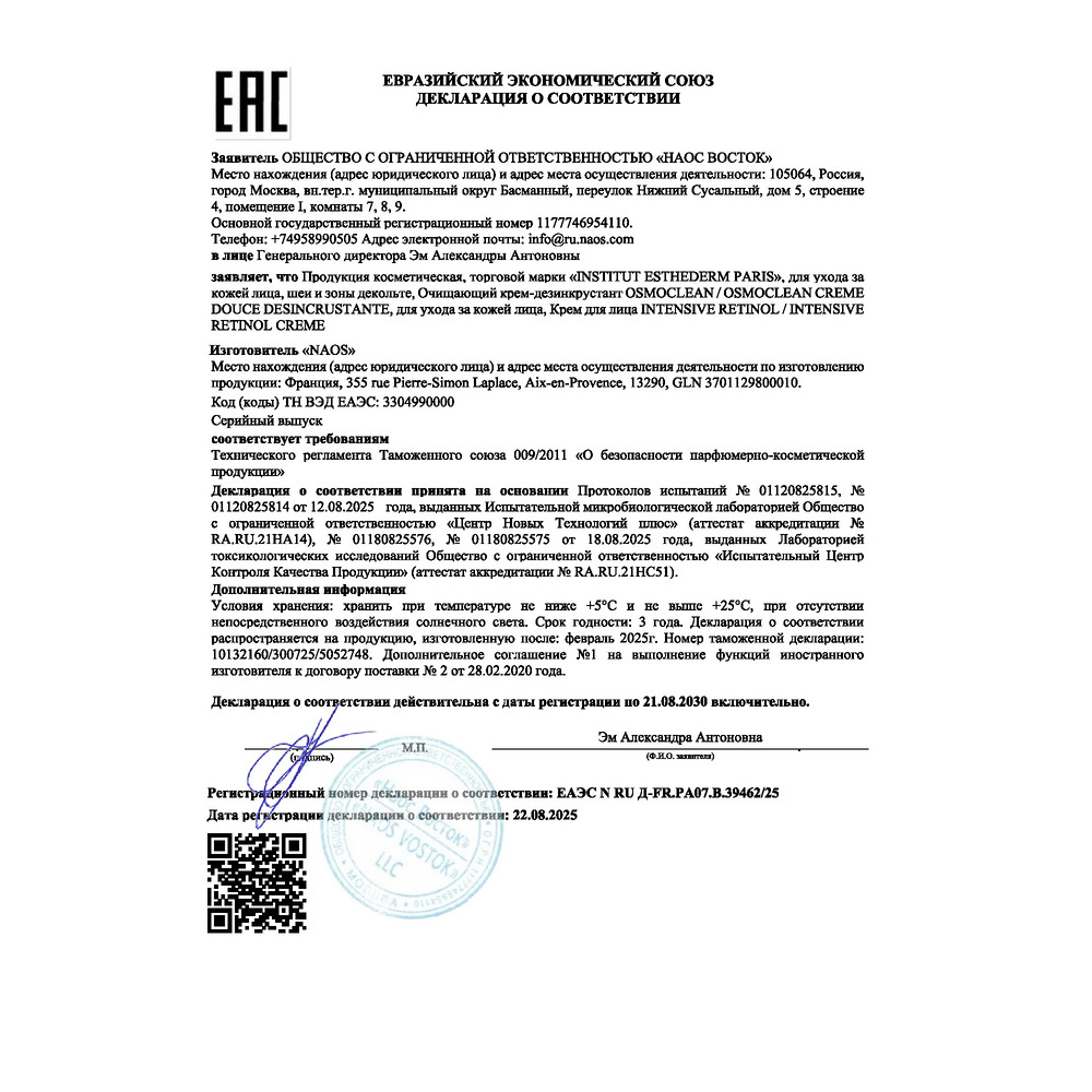 - Активные компоненты Ретинол (витамин А), Диоксид титана, Глицерин, Ниацинамид (витамин B3), Аденозин