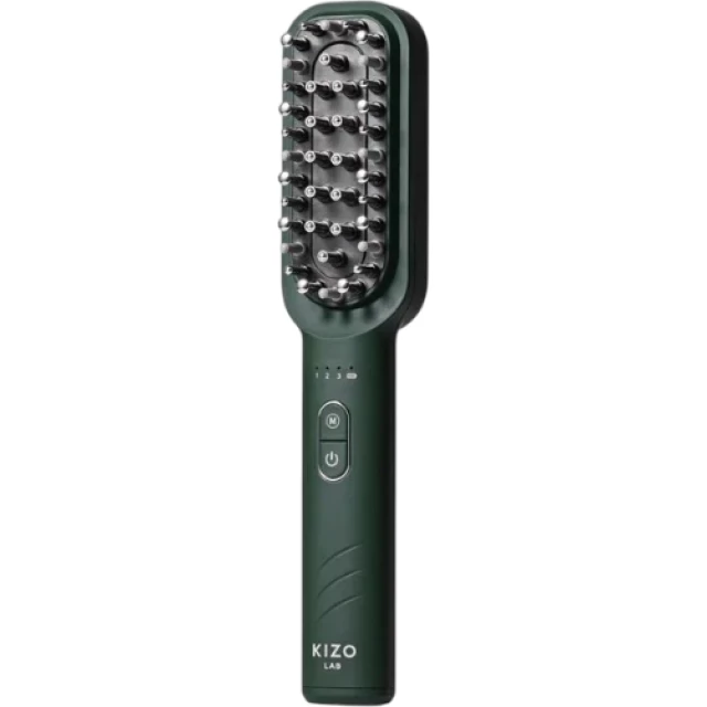LED-расческа BioGro — это простое, многофункциональное устройство для нанесения сыворотки для волос, позволяющее равномерно распределить по коже головы сыворотку-активатор для волосяных фолликулов Kizo Lab.