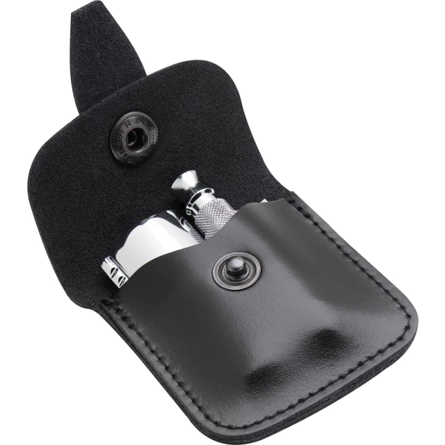 Ручка И Гребень Из Латуни, Литая Головка Из Цинка, Гальваническое Глянцевое Хромированное Покрытие, Чехол Черного Цвета Из Натуральной Воловьей Кожи Растительного Дубления.