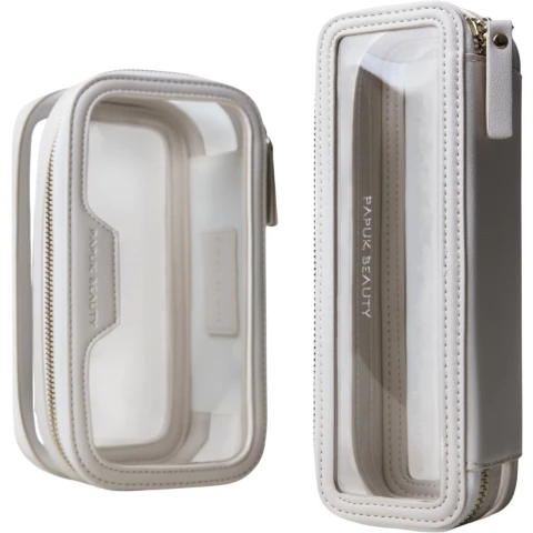 Набор прозрачных косметичек с пеналом, молочный