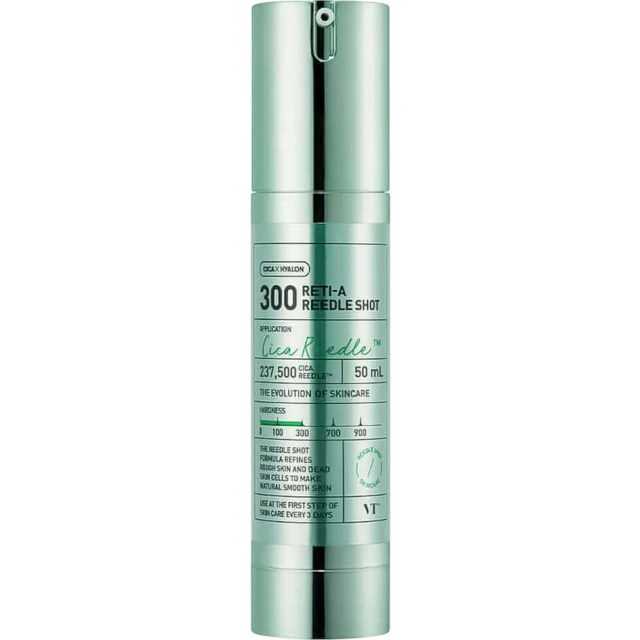 Бустер-сыворотка Reti-A Reedle Shot 300 разглаживает текстуру и полирует поверхность кожи, сокращая видимость морщин, расширенных пор, пигментных пятен и других несовершенств.